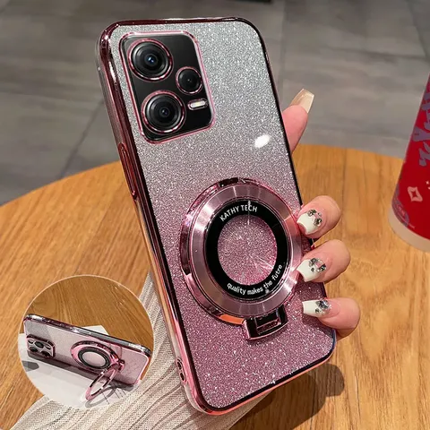 غلاف هاتف محمول من طراز 12 Pro للإشارة إلى شبكات الجيل الخامس مزود بدعامة، غلاف لامع لهاتف Xiaomi Redmi note 12 pro 12C 10 13C 12 4G مع حامل Note12