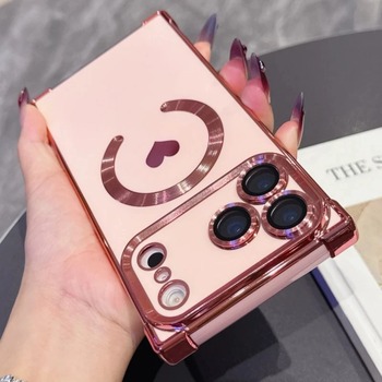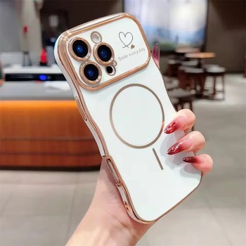 Para Magsafe Plating Love Heart Phone Case para iPhone 17 16 15 14 13 12 11 Pro Max Plus 17 Air Magnetic Wireless Charging Cover