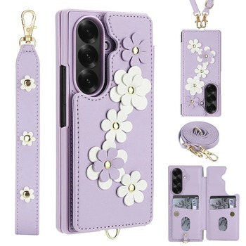 Funda para Samsung Galaxy Z Fold 7 6 5 4, billetera con tarjetero, monedero cruzado con diseño de flores bonitas, soporte magnético a prueba de golpes